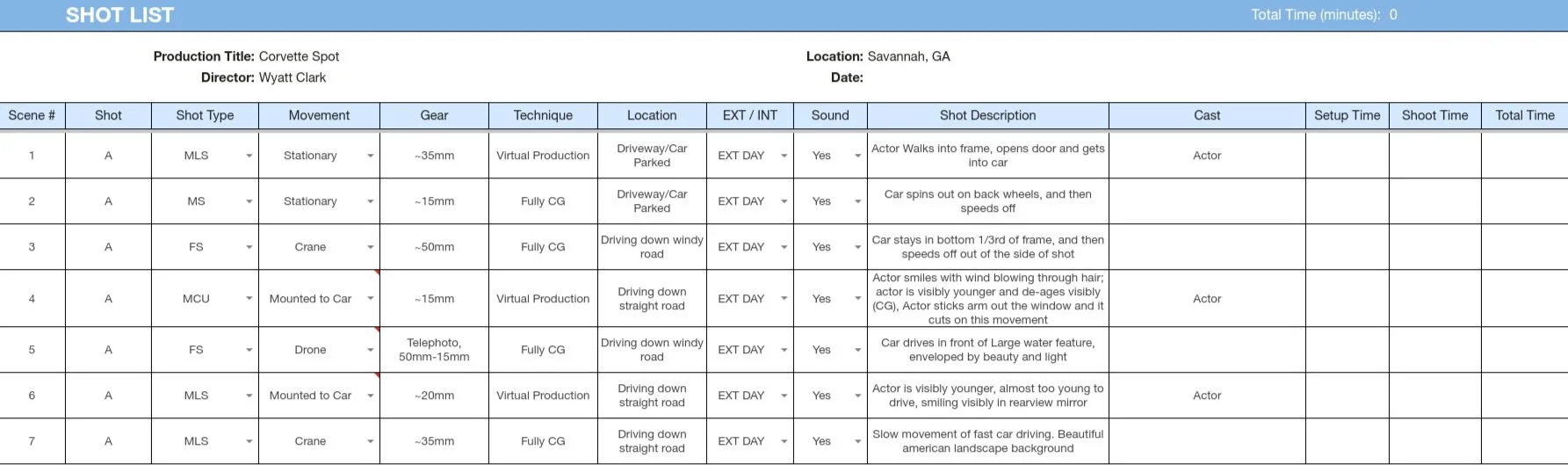 For shots with an actor (Shot01, Shot04, and Shot 06), if I cannot acquire a real car, these will be fully virtual. I will write up a full how-to and plan for both kinds of shots (VP and CG).
